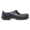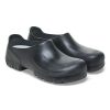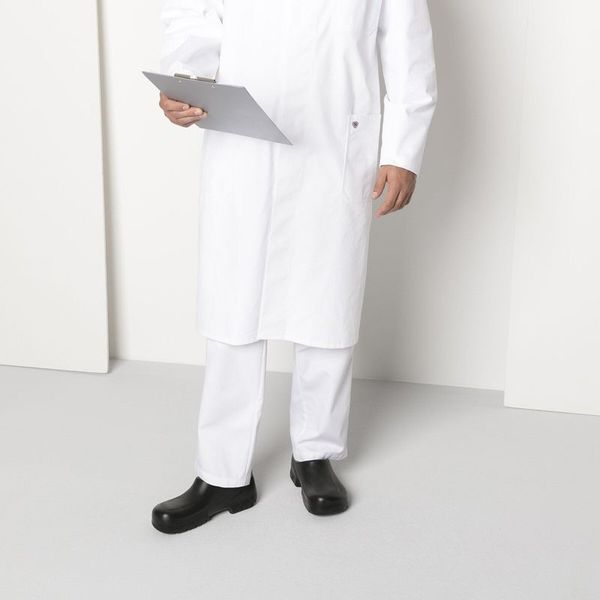 The A 630 PU clog covers all bases when it comes to stringent hygiene standards and reliable nonslip properties. Its enclosed design and the nonslip treaded sole offer reliable grip and maximum sure-footedness in kitchens and the food industry. Its oil- and grease-resistant material is also water-resistant, allowing it to be cleaned efficiently and thoroughly. This involves removing the cork-latex footbed and washing the clog at up to 80° Celsius. Both parts of the shoe are suitable for daily disinfection. The anatomically shaped original brand footbed protects joints and tendons, and is also washable at up to 30° Celsius. The footbed is available separately and can therefore be replaced if necessary. The A 630 model is certified in accordance with EN ISO 20347:2012 OB E (SRC category).