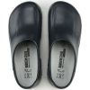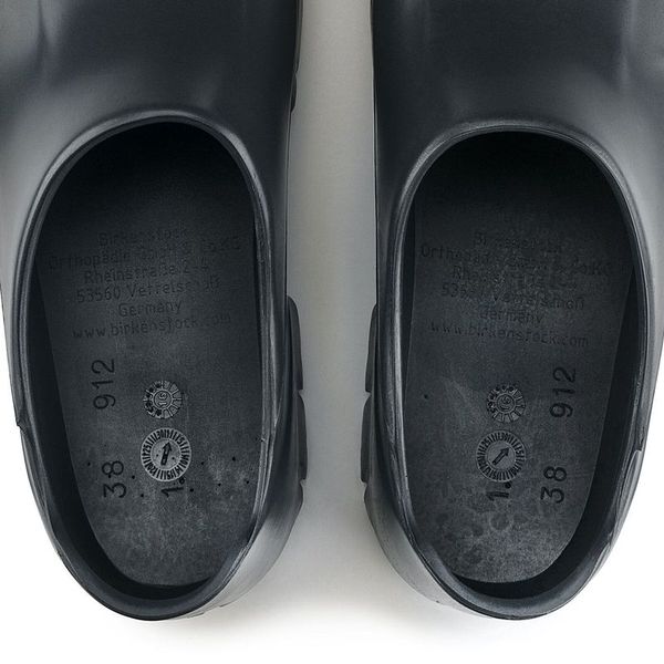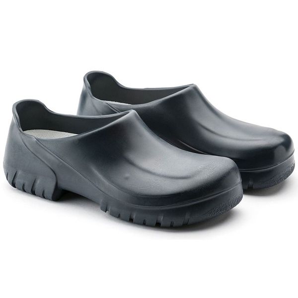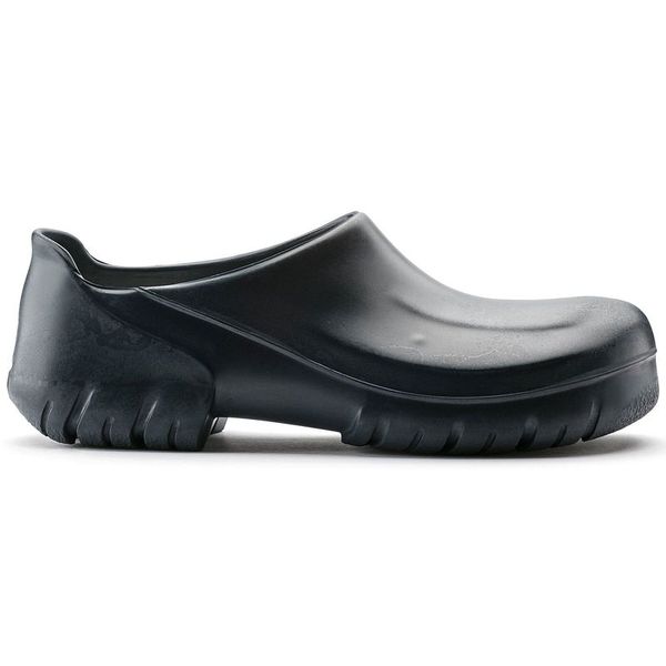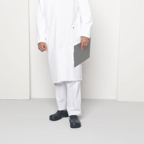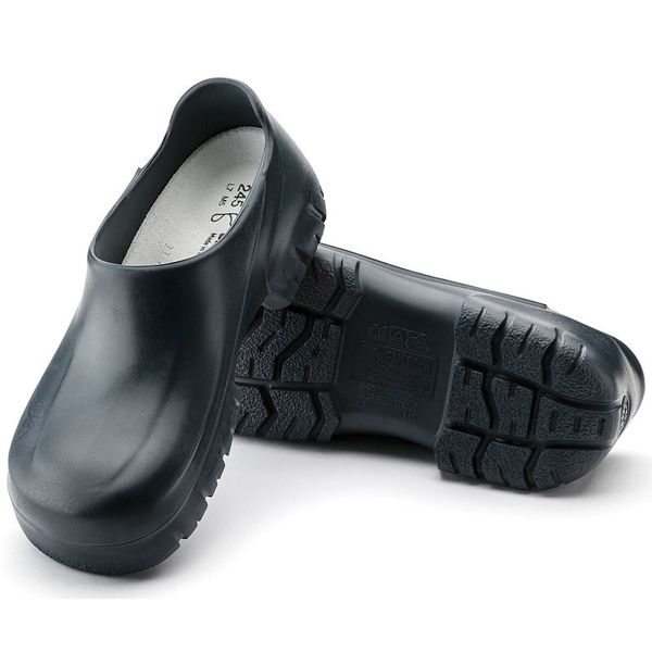 The A 640 PU clog covers all bases when it comes to stringent hygiene standards and reliable nonslip properties. Its enclosed design and the nonslip treaded sole offer reliable grip and maximum sure-footedness in kitchens and the food industry. Its solid steel toe cap protects toes and the front of the foot from impacts of up to 200 joules. Its oil- and grease-resistant material is also water-resistant, allowing it to be cleaned efficiently and thoroughly. This involves removing the cork-latex footbed and washing the clog at up to 80° Celsius. Both parts of the shoe are suitable for daily disinfection. The anatomically shaped original brand footbed protects joints and tendons, and is also washable at up to 30° Celsius. The footbed is available separately and can therefore be replaced if necessary. The A 640 model is certified in accordance with EN ISO 20345:2011 SB E (SRC category).
