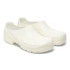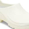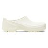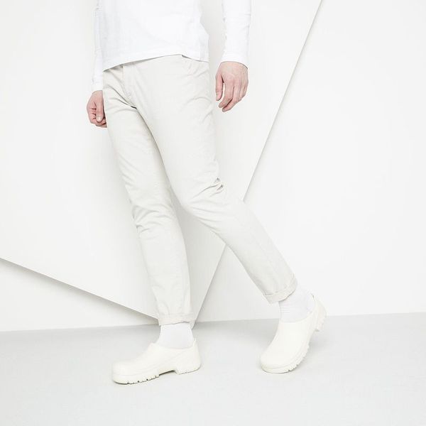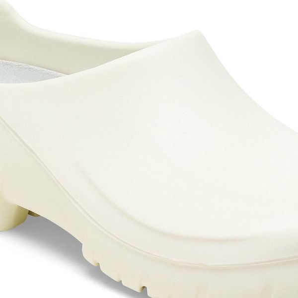The A 640 PU clog covers all bases when it comes to stringent hygiene standards and reliable nonslip properties. Its enclosed design and the nonslip treaded sole offer reliable grip and maximum sure-footedness in kitchens and the food industry. Its solid steel toe cap protects toes and the front of the foot from impacts of up to 200 joules. Its oil- and grease-resistant material is also water-resistant, allowing it to be cleaned efficiently and thoroughly. This involves removing the cork-latex footbed and washing the clog at up to 80° Celsius. Both parts of the shoe are suitable for daily disinfection. The anatomically shaped original brand footbed protects joints and tendons, and is also washable at up to 30° Celsius. The footbed is available separately and can therefore be replaced if necessary. The A 640 model is certified in accordance with EN ISO 20345:2011 SB E (SRC category).