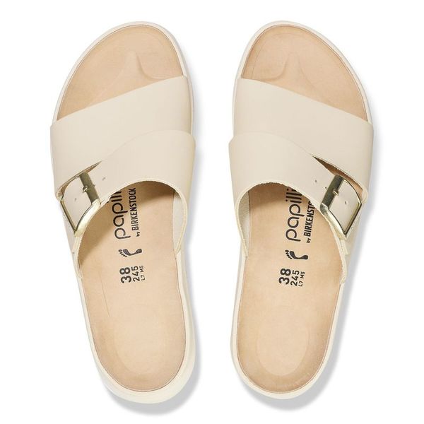 The Almina sandal from Papillio is a platform sandal with a with a slight, flared wedge heel. Its optimum stability thanks to the wide strap at the instep makes it a real hit with women who want both high fashion and comfort. Papillio presents the two-strap sandal as an exquisite version and with a trendy platform sole. The bevel results in maximum walking comfort. The exquisite footbed is fully lined with soft piumato leather, making it exceptionally comfortable. The upper is made from high-quality aniline leather.