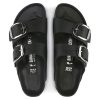 - Details: two straps, each with an individually adjustable metal pin buckle; color-coordinated footbed