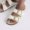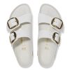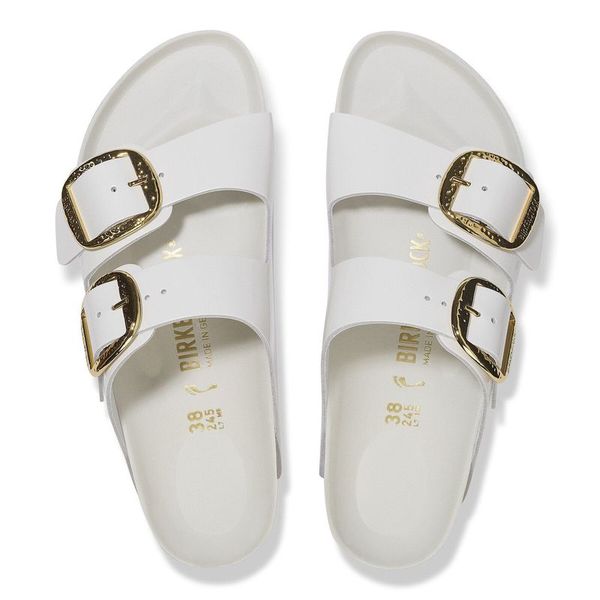 The brand Arizona is a genuine classic that has been delighting both men and women for decades. This simple sandal with two straps stands for timeless design and has long held cult status thanks to its comfort factor. The Big Buckle Hammered version is unmistakable with its large, elegant pin buckles and hand-hammered design. An impressive and distinctive eye-catcher on this otherwise understated sandal. The upper is made from high-quality natural leather with a shiny patent coating.
