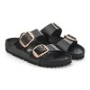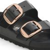 The brand Arizona is a genuine classic that has been delighting both men and women for decades. This simple sandal with two straps stands for timeless design and has long held cult status thanks to its comfort factor. The exquisite footbed is fully lined with soft piumato leather, making it exceptionally comfortable. The buckles with a high-polish effect round off the shoe’s look of sophistication. The upper is made from high-quality natural leather with a shiny patent coating.