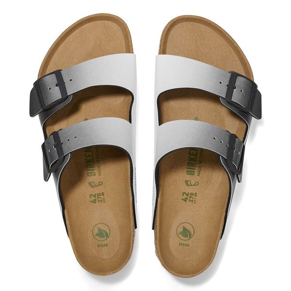 The brand Arizona is a genuine classic that has been delighting both men and women with its timeless design for decades. This variant features soft blending hues. This sandal has been given an update in a new material, with a vegan version now available. It is entirely free of animal products, as verified by independent testing laboratories. The upper is made from the skin-friendly, hard-wearing synthetic material Birko-Flor®.