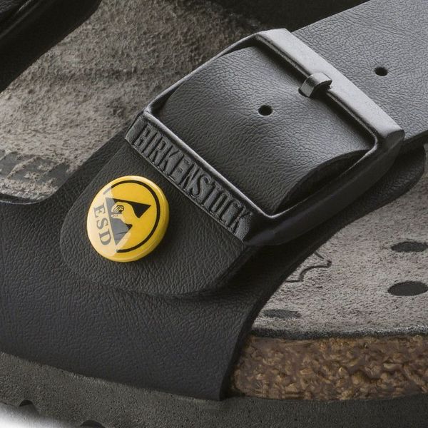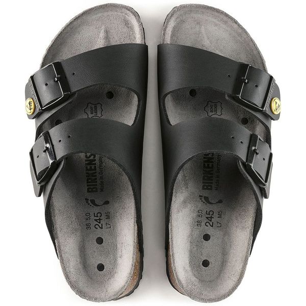 With its high level of comfort and the anatomically shaped original cork-latex footbed, the Arizona two-strap sandal from brand lends itself well to daily occupational use. Thanks to its additional ESD properties to combat spontaneous electrostatic discharge, this model is ideal for wearing in ESD areas. The combination of the footbed and the specially developed sole guarantees permanently gentle discharge and protects sensitive parts. All brand ESD models are tested in accordance with the requirements of EN 61340 and meet the ESD requirements of 1.0 × 105 to 3.5 × 107 ohms.