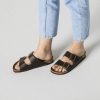 The brand Arizona is a genuine classic. This individually adjustable unisex two-strap sandal is now available in a uniquely sophisticated leather version. The leather features an open selvedge finish, emphasizing the handcrafted and natural look of these stylish sandals.