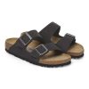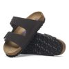 The brand Arizona is a genuine classic. This individually adjustable unisex two-strap sandal is now available in a uniquely sophisticated nubuck leather version. The leather features an open selvedge finish, emphasizing the handcrafted and natural look of these stylish sandals. The soft and comfortable footbed provides extra comfort.