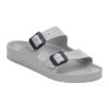 The brand Arizona is a genuine classic that has been delighting both men and women for decades. This simple sandal with two straps stands for timeless design and has long held cult status thanks to its comfort factor. This version features the modern and functional brand stealth buckle made from a stainless synthetic material and makes an impression with its durability and minimalist design. Modeled on the cork original, this sandal is made from especially light and highly flexible EVA. This high-quality, odor-neutral synthetic material which has been tested for harmful substances is shock-absorbent, water-resistant, and skin-friendly. It’s therefore perfect for the beach, the garden, or wellness and spa areas.