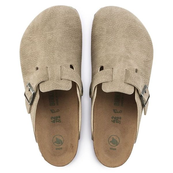 The brand Boston clog is a veritable classic that can easily be worn all year round. This popular sandal has been given an update in a new material, with a vegan version now available. It is entirely free of animal products, as verified by independent testing laboratories. The upper is made from a skin-friendly synthetic material. The sandal boasts sophisticated material use with a matte finish that’s reminiscent of natural leather while nevertheless being 100% vegan.