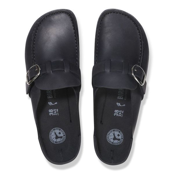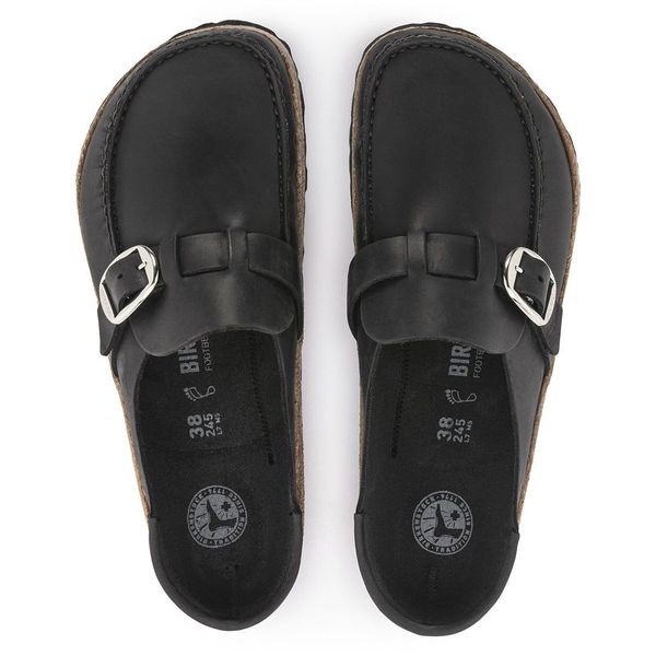 The brand Buckley is a semi-open moccasin-style clog that’s instantly recognizable as an authentic brand original thanks to its thick cork sole. The striking stitching catches the eye. This version comes with our popular Big Buckle. The upper is made from extra thick, oiled nubuck leather with an open-selvage finish.