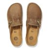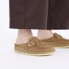The brand Buckley is a semi-open moccasin-style clog that’s instantly recognizable as an authentic brand original thanks to its thick cork sole. The striking stitching catches the eye. This version comes with our popular Big Buckle. The upper is made from extra thick, oiled nubuck leather with an open-selvage finish.