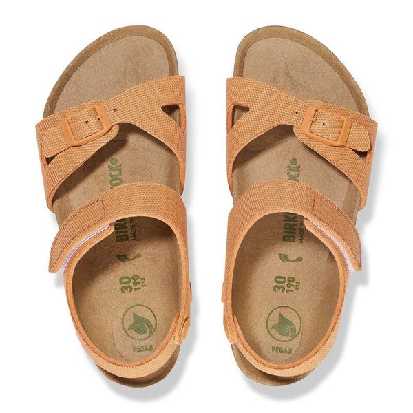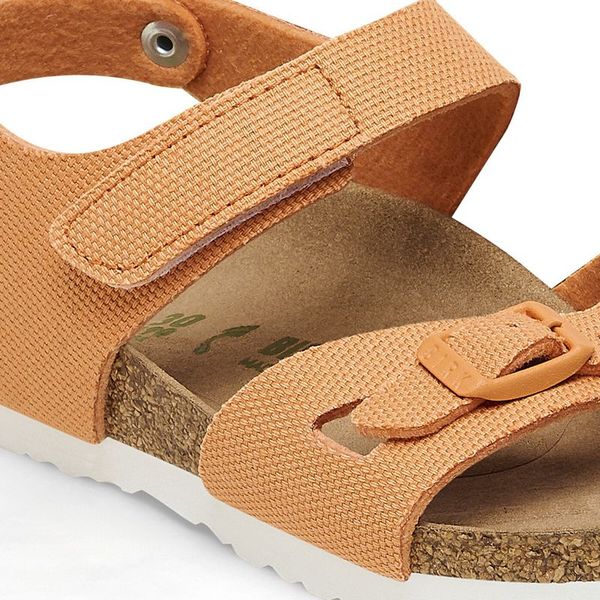 The brand Colorado is a variation on the classic Rio. The buckle at the ankle strap has been replaced by a touch fastener, allowing it to be put on and taken off in an instant – perfect for kids’ impatient feet! This popular sandal has been given an update in a new material, with a vegan version now available. It is entirely free of animal products, as verified by independent testing laboratories. The upper is made from smooth fabric.