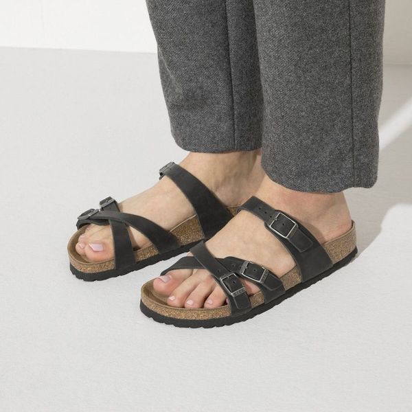 The brand Franca is a jaunty sandal with slim cross-over straps. The impressive combination of design and wearability will see fashion-conscious women through the day with elegance and comfort. The upper is made from extra thick, oiled nubuck leather and features an open-selvage finish.
