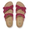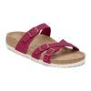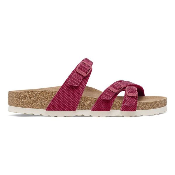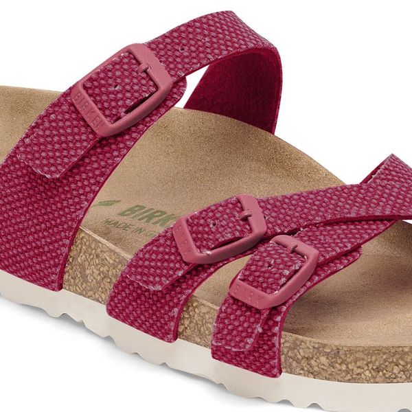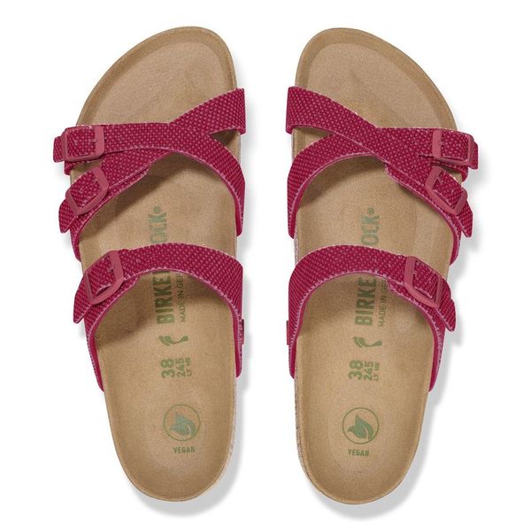 - Details: three straps, each with an individually adjustable metal pin buckle; color-coordinated details; vegan