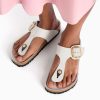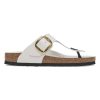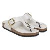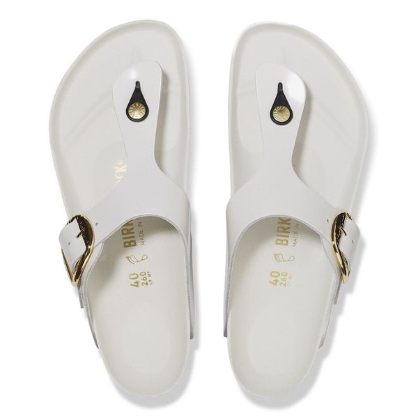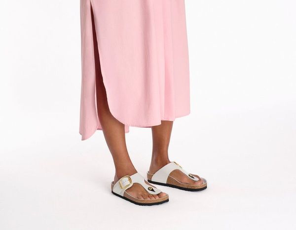 The brand Gizeh is a genuine classic and a stylish all-rounder. Our elegant thong sandal combines optimum grip with minimalist, fashionable design. The Big Buckle Hammered version is unmistakable with its large, elegant pin buckles and hand-hammered design. An impressive and distinctive eye-catcher on this otherwise understated sandal. The semi-exquisite footbed is fully lined with soft piumato leather, making it exceptionally comfortable. The upper is made from high-quality natural leather with a shiny patent coating.