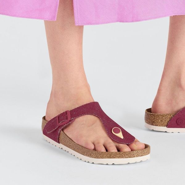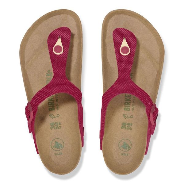 The brand Gizeh is a genuine classic that combines optimum grip with minimalist, fashionable design. This version boasts a natural canvas look. It has been given an update in a new material, with a vegan version now available. It is entirely free of animal products, as verified by independent testing laboratories. The upper is made from smooth fabric.