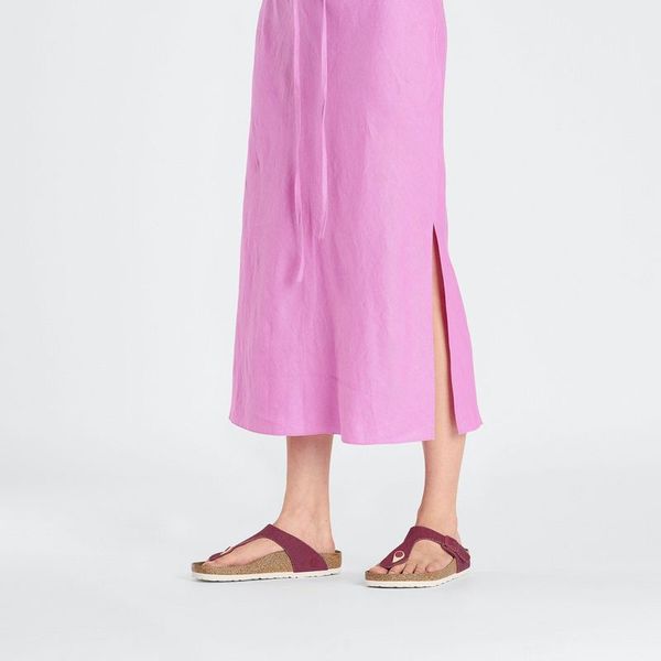 - Details: thong with an individually adjustable metal pin buckle; vegan