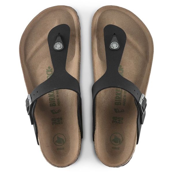 The brand Gizeh is a genuine classic that combines optimum grip with minimalist, fashionable design. The color-coordinated outsole rounds off the shoe’s look of sophistication. This popular sandal has been given an update in a new material, with a vegan version now available. It is entirely free of animal products, as verified by independent testing laboratories. The upper is made from the skin-friendly, hard-wearing synthetic material Birko-Flor® in a sophisticated nubuck look which boasts a texture and color that could almost be mistaken for real leather.