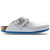 The Kay Super Grip offers all the advantages of brand ’s classic Tokio and Boston models in one. The upper instep strap can be folded back if required, thus providing additional support as a backstrap. The Super Grip sole is nonslip, promotes the ideal rolling motion, and is also oil- and grease-resistant. The EVA midsole in the leather version has additional soft padding that reliably and permanently cushions the foot with every step – even if your feet are sensitive. This high degree of flexibility and sure-footedness is in great demand in particular in medical environments. All Super Grip soles are tested for slip resistance in accordance with EN ISO 20347:2012.