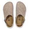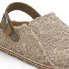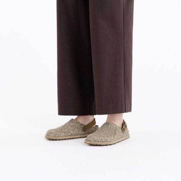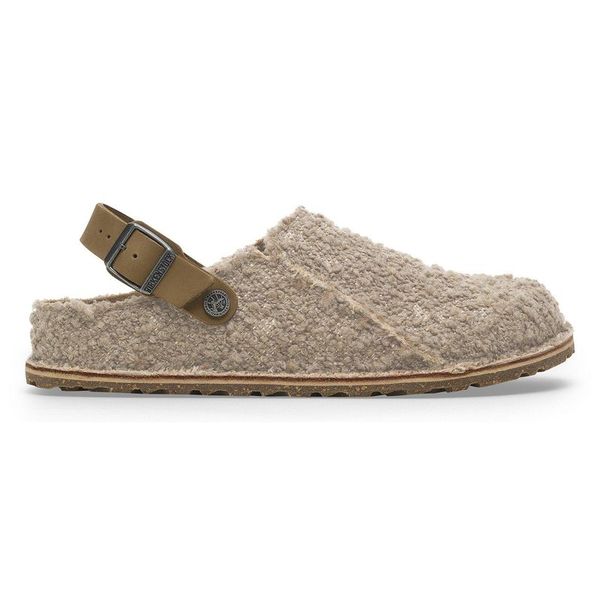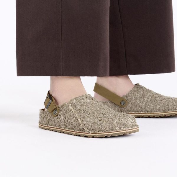 The brand Lutry is a slipper that can be worn as a backstrap style or as an open clog thanks to the flexible ankle strap. The footbed can be removed, for you to choose between three different footbed versions. This basic version features our standard footbed. It replicates the natural print made by a foot walking on sand and will see you through the day in comfort. The upper material consists of bouclé inspired by home textiles, which stands out thanks to its soft structure and pleasant feel.