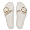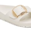 This is a new and modern interpretation of the brand classic Madrid. This version features our popular Big Buckle made from a stainless synthetic material and makes an impression with its durability and minimalist design. Modeled on the cork sandal, it is made from the ultra-lightweight and highly flexible synthetic material EVA. The high-quality, odor-neutral EVA has been tested for harmful substances and combines numerous positive attributes: it is very light, highly elastic, shock-absorbent, water-resistant, and skin-friendly.