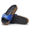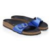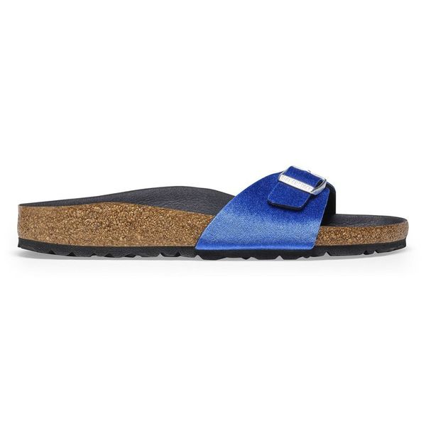 The brand Madrid is the oldest member of the family of models, making it a veritable classic. Launched as a “gymnastics sandal” half a century ago, this simple single-strap model has gone on to become a firm fashion favorite. This version comes in sophisticated velvet. The color-contrasting footbed rounds off the shoe’s look of sophistication. The upper is made from smooth fabric.