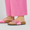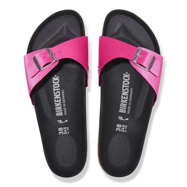 The brand Madrid is the oldest member of the family of models, making it a veritable classic. Launched as a “gymnastics sandal” half a century ago, this simple single-strap model has gone on to become a firm fashion favorite. This version comes in sophisticated velvet. The color-contrasting footbed rounds off the shoe’s look of sophistication. The upper is made from smooth fabric.