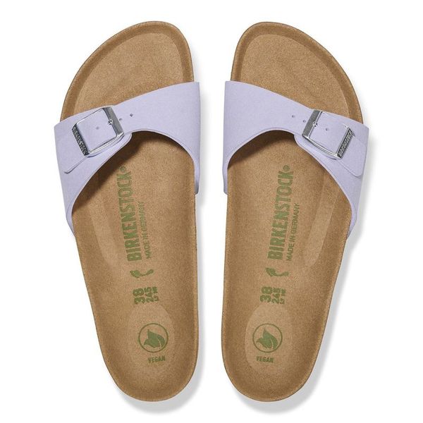 The brand Madrid is a genuine classic that delights the world of fashion with its minimalist design. This popular sandal has been given an update in a new material, with a vegan version now available. It is entirely free of animal products, as verified by independent testing laboratories. The upper is made from a skin-friendly, synthetic material with a velvety feel.