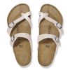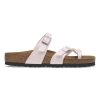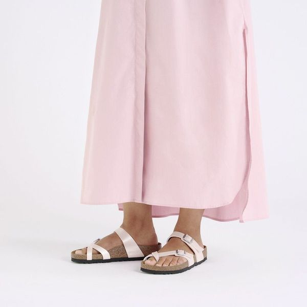 The brand Mayari thong sandal is a jaunty model with a toe loop. The impressive combination of design and wearability will see fashion-conscious men and women through the day with elegance and comfort. This version features an iridescent, silky sheen. The Saffiano embossing is reminiscent of the iconic crosshatch pattern familiar from luxury leather accessories. The upper is made from the skin-friendly, hard-wearing synthetic material Birko-Flor®, which has been embossed.