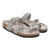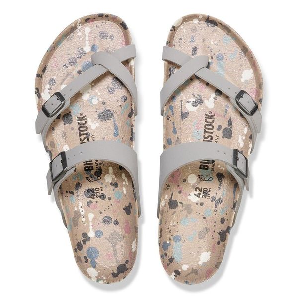 The brand Mayari thong sandal is a jaunty model with a toe loop. The impressive combination of design and wearability will see fashion-conscious men and women through the day with elegance and comfort. This version boasts stylish, tasteful design accentuated with striking splashes of color on the footbed lining. The upper is made from the skin-friendly, hard-wearing synthetic material Birko-Flor® in a sophisticated nubuck look which boasts a texture and color that could almost be mistaken for real leather.