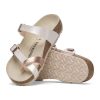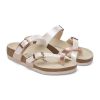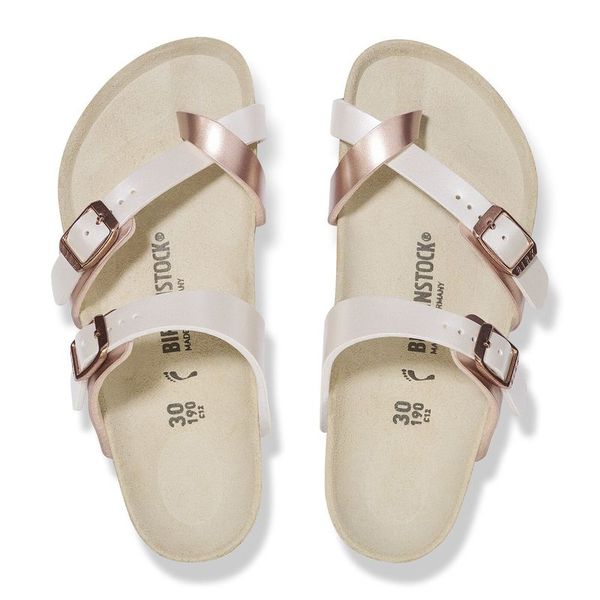 Jaunty and modern! The brand Mayari thong sandal stands out with its flowing look and is a real eye-catcher at school. This sandal was reinterpreted in an extravagant electric metallic look. The reflective film makes this classic model dazzle and is sure to make any outfit turn heads. The upper is made from skin-friendly, hard-wearing Birko-Flor®.
