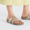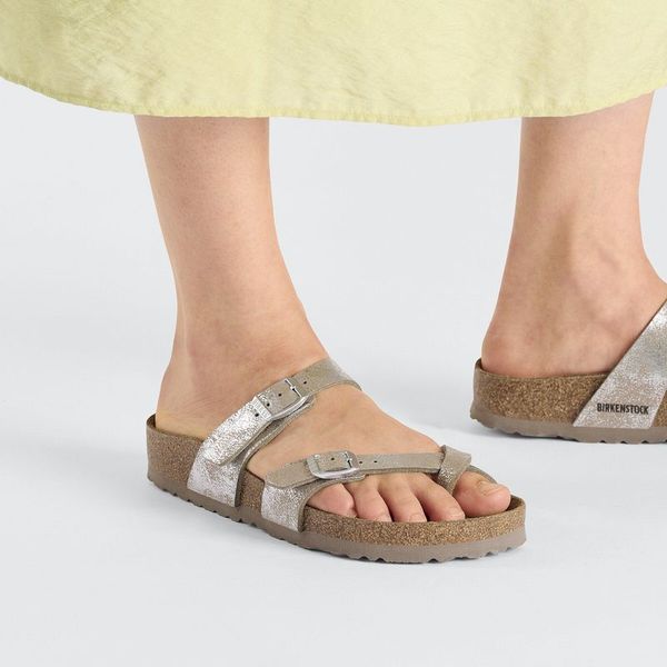 Jaunty and modern! The brand Mayari thong sandal stands out with its flowing look and brings together design and comfort. This model comes in a faded metallic look with a subtle vintage effect that can vary from shoe to shoe and which comes to the fore the more it is worn. The color-coordinated outsole rounds off the shoe’s look of sophistication. The upper is made from a skin-friendly synthetic material.