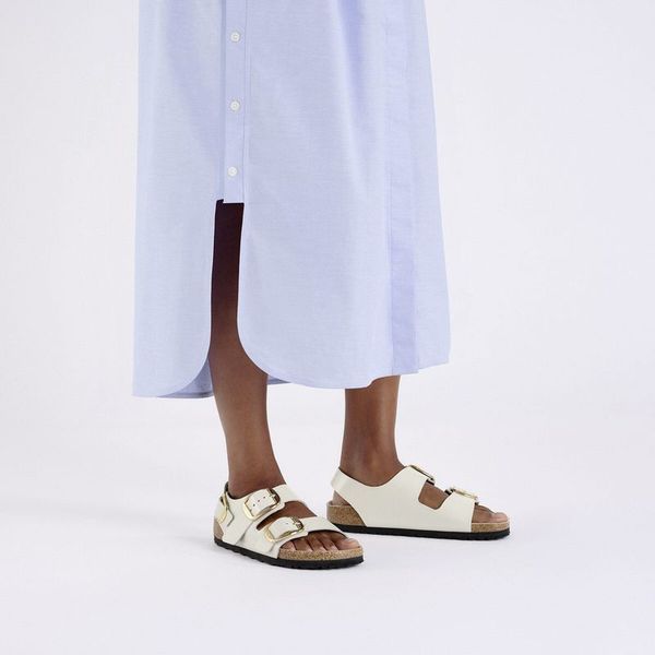 Milano Big Buckle Natural Leather Patent High-Shine Ecru