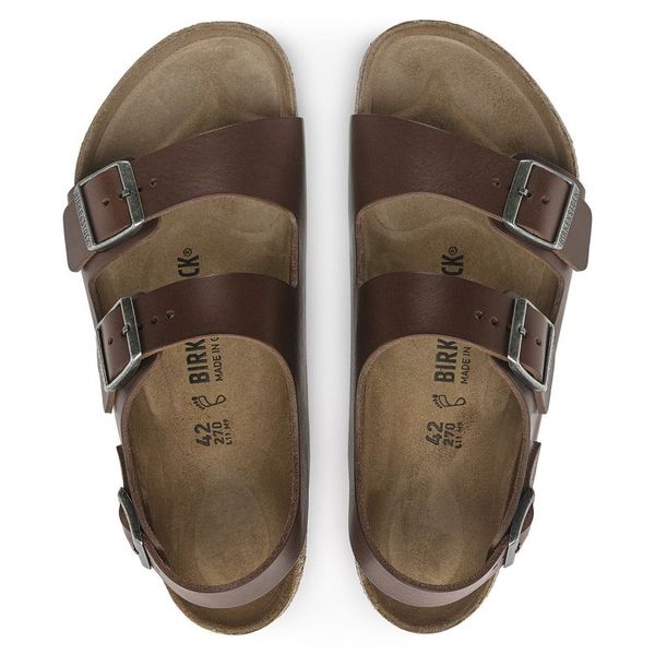 The brand Milano guarantees maximum grip and gives the feet stability during all activities. This is thanks to the slightly more compact upper with two straps and the wide ankle strap. This version revives the traditions of leather goods manufacturers with its look thanks to the surface texture of the high-quality, soft aniline leather. With its two components, the sole guarantees stability and comfort. It comprises a cushioning midsole made from EVA and an outsole made from genuine rubber.