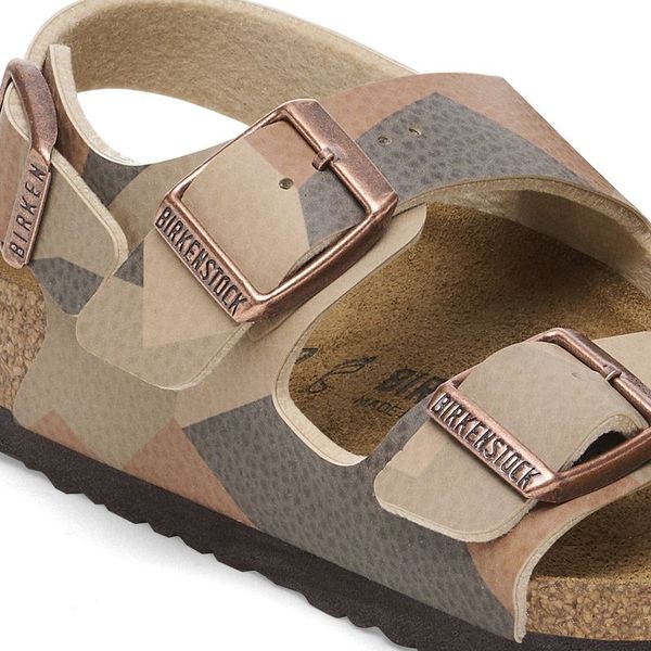 Maximum grip, stability, and a perfect fit! The brand Milano offers all of this thanks to its compact design with an ankle strap – even during boisterous play. This version features a geometric print. The upper is made from the skin-friendly, hard-wearing synthetic material Birko-Flor®.