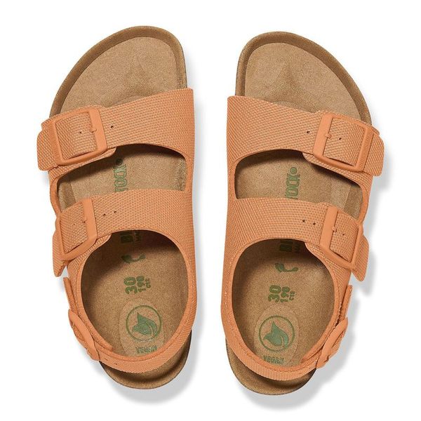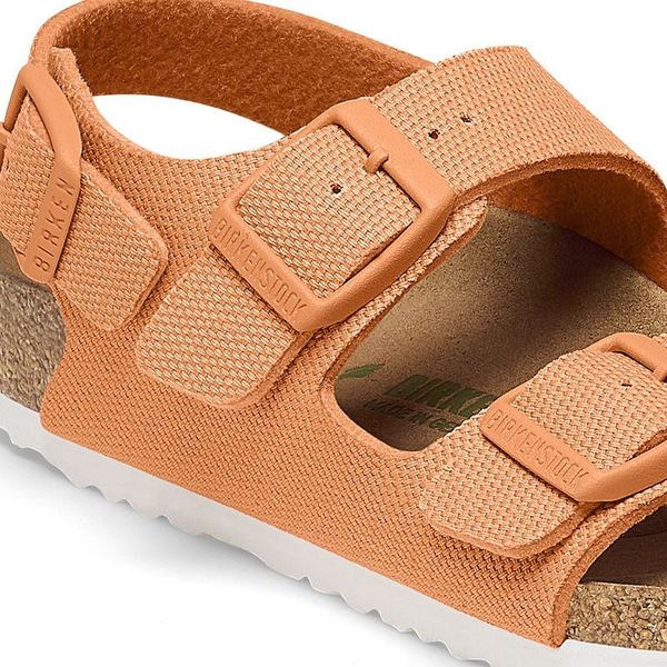 Maximum grip, stability, and a perfect fit! The brand Milano offers all of this thanks to its compact design with an ankle strap – also during boisterous play. This popular sandal has been given an update in a new material, with a vegan version now available. It is entirely free of animal products, as verified by independent testing laboratories. The color-coordinated details are an additional eye-catcher. The upper is made from a soft fabric.