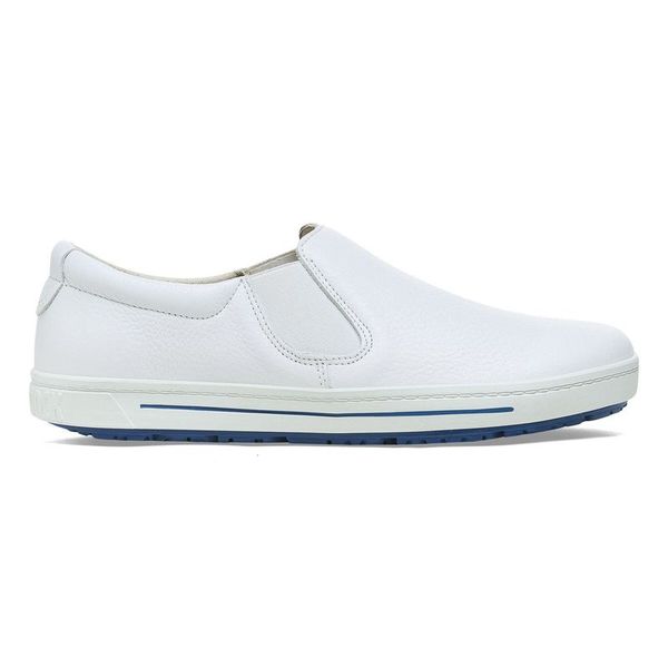 BIRKENSTOCK’s QO400 work shoe with a removable footbed offers firm grip and takes the strain off your feet, allowing you to stand and move around comfortably at work for many hours, even in demanding environments.The QO400 has no lacing and is presented as a simple slip-on shoe. The nonslip and oil- and petrol-resistant outsole provides for energy absorption around the heel. The upper is made from water-resistant smooth leather (WRU) and offers antistatic protection.The shoe is certified in accordance with EN ISO 20347:2012 and meets the requirements of protection category O2.