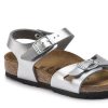 - Details: two-strap sandal with a heel strap and two individually adjustable metal pinbuckles