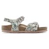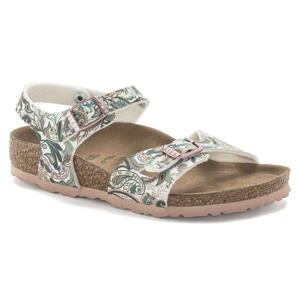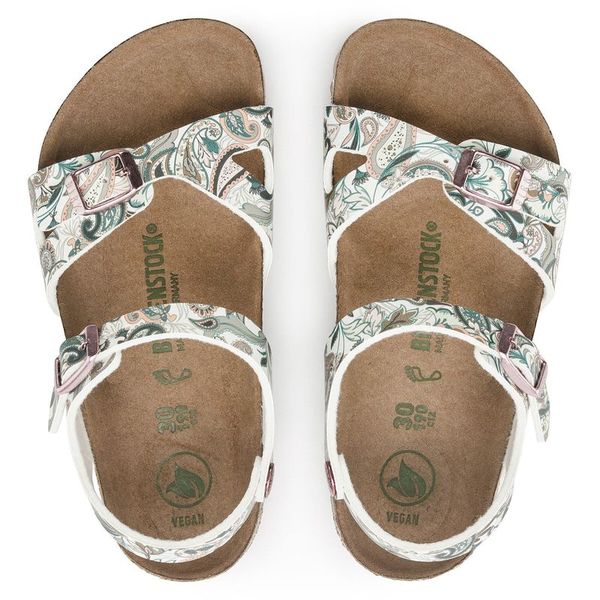 The brand Rio is a sporty, elegant sandal with an ankle strap that offers reliable and comfortable grip – even during boisterous activities. This version features a creative paisley print. The color-coordinated details round off the shoe’s look of sophistication. This popular sandal has been given an update in a new material, with a vegan version now available. It is entirely free of animal products, as verified by independent testing laboratories. The upper is made from the skin-friendly, hard-wearing synthetic material Birko-Flor®.