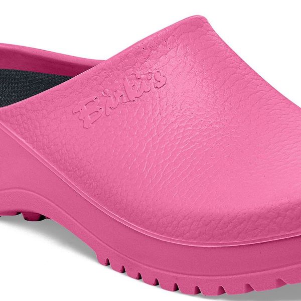 The PU (polyurethane) clog Super Birki is suitable for leisure, garden, and professional wear. This compact shoe made from water-resistant and dirt-repellent polyurethane is also oil- and grease-resistant. This extremely resilient material is washable at up to 60° Celsius and can be efficiently disinfected. The anatomically shaped cork-latex footbed is lined with a moisture-wicking fabric. It can be removed for easy cleaning and is washable at up to 30° Celsius.