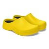 The wide array of colors that the Super Birki is available in makes it highly versatile for use in all sorts of occupational and private settings. This compact shoe made from water-resistant and dirt-repellent polyurethane is also oil- and grease-resistant. This extremely resilient material is washable at up to 60° Celsius and can be efficiently disinfected. Its resilience and its hygiene properties make it ideal for kitchens, medical environments, and the food industry – while it can equally serve as a practical garden clog. The anatomically shaped cork-latex footbed is lined with a moisture-wicking fabric. It can be removed for easy cleaning and is washable at up to 30° Celsius.