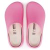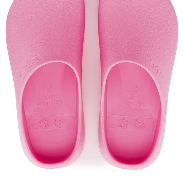 The Super Birki is suitable for leisure, garden, and professional wear. With its flat heel section, this popular and seamless clog provides the feet with all-around protection and grip. The footbed is replaceable. This version comes with colorful prints on the footbed. This sandal has been given an update in a new material, with a vegan version now available. It is entirely free of animal products, as verified by independent testing laboratories. The upper is made of polyurethane (PU). It is flexible, water- and dirt-repellent and makes the shoe particularly easy to care for.