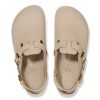 The brand Tokio clog is a variation on the classic Boston. The model is characterized by its ankle strap and can easily be worn any time of the year. The lining of the semi-exquisite footbed is covered with soft smooth leather and matches the shoe in color. The upper is made from high-quality, soft nubuck leather that boasts a natural, rustic appearance.