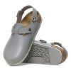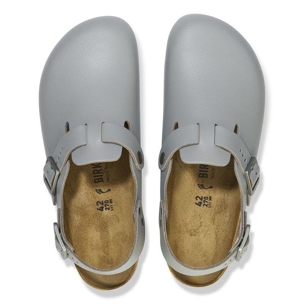 The brand classic Tokio Pro has become a true classic among professional shoes, especially for medical professions. The clog is fitted with an anatomically shaped original brand cork-latex footbed and a dual-component sole. This comprises a cushioning midsole made from EVA and a nonslip, dynamic, treaded outsole made from genuine rubber. The outsole can furthermore be repaired. Therefore, the clog is particularly well suited to day-to-day wear in hospitals. The upper is made from high-quality, particularly soft natural leather which is coated with polyurethane (PU). The PU coating makes the material more durable and thus particularly long-lasting. The clog offers comfort and safety. The shoe’s enclosed design protects the foot from impacts and the injuries they cause. Thanks to the adjustable strap with a sturdy metal buckle on the instep, it can also be adjusted to the wearer’s feet. A backstrap that can be perfectly fitted to the wearer’s feet thanks to an individually adjustable metal buckle provides the foot with additional grip and a firm step – even when everyday working life gets hectic.