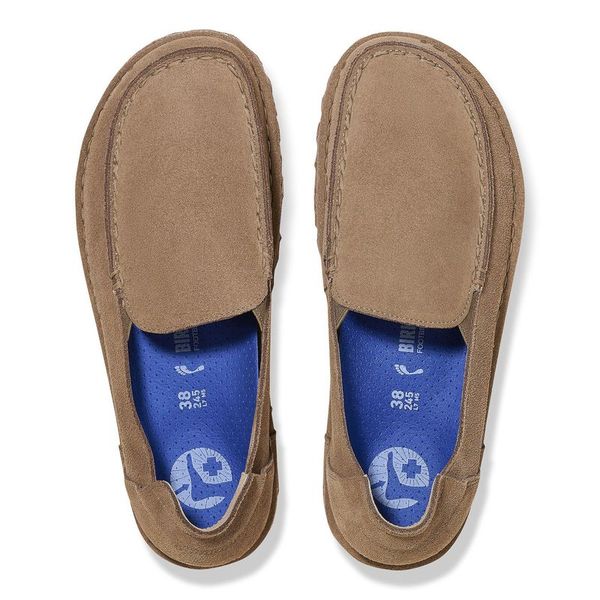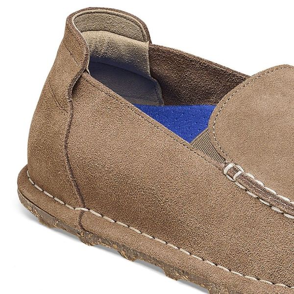 The brand Utti is a timeless moccasin-style shoe. The striking stitching catches the eye. The soft heel tab not only guarantees comfort but also ensures that the shoe is easy to put on and take off. The comfortable and light Deep Blue Footbed makes the shoe a perfect 24/7 all-rounder. Its natural design is down to the upper made from especially soft suede, which hugs the foot like a second skin.