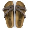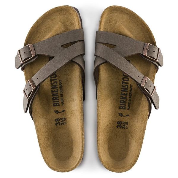 Jaunty and feminine! The svelte brand Yara successfully bridges the gap between thong sandal and sandal. The upper is made from the skin-friendly, hard-wearing synthetic material Birko-Flor® in a sophisticated nubuck look which boasts a texture and color that could almost be mistaken for real leather.